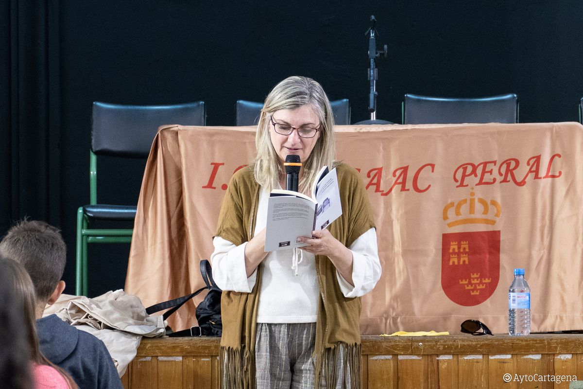 Carmen Piqueras es la escritora protagonista de la sección Autor Regional Invitado del Premio Mandarache durante este curso escolar y este miércoles, 2 de mayo, ha visitado varios centros de enseñanza participantes en este característico proyecto de educación lectora impulsado por la Concejalía de Juventud del Ayuntamiento de Cartagena.