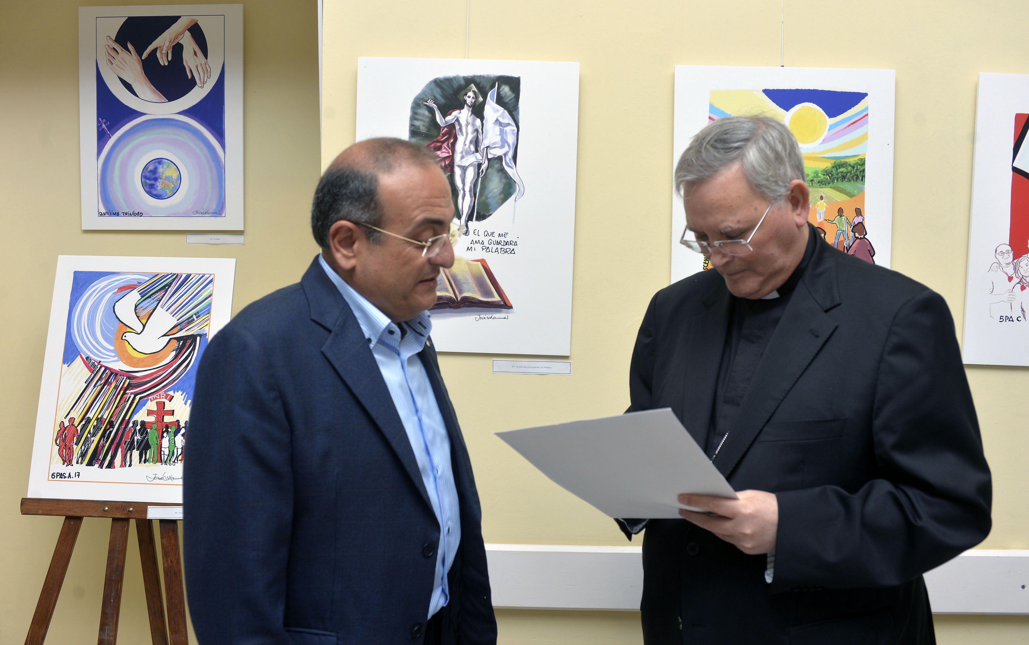 El obispo José Manuel Lorca Planes expone en la  parroquia de San Diego los dibujos que realiza cada domingo para ilustrar el Evangenio en la web y en la ra exposición 'El Evangelio y la realidad en dibujos' realizada con los dibujos que el Obispo de Cartagena, Mons. José Manuel Lorca Planes, realiza cada domingo para ilustrar el Evangelio en la web y en la revista diocesana.
