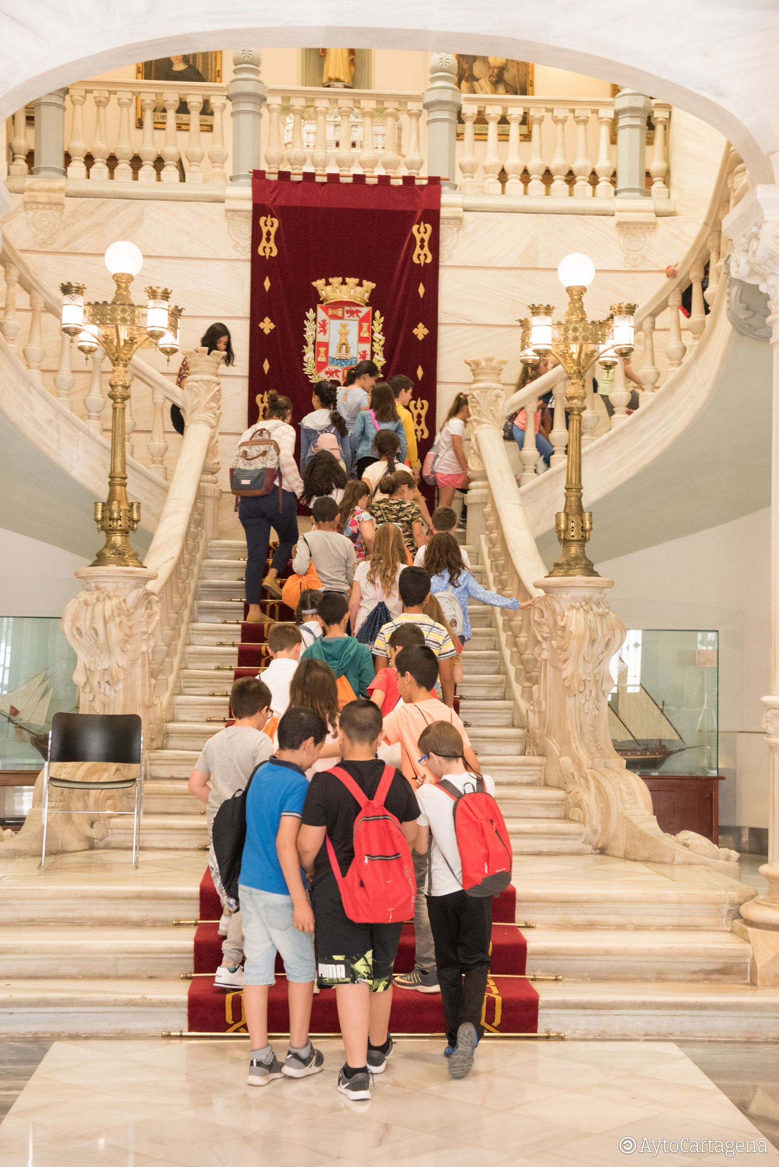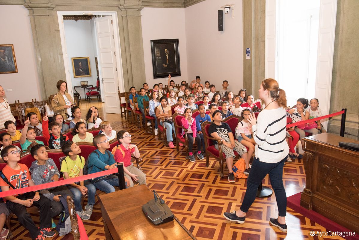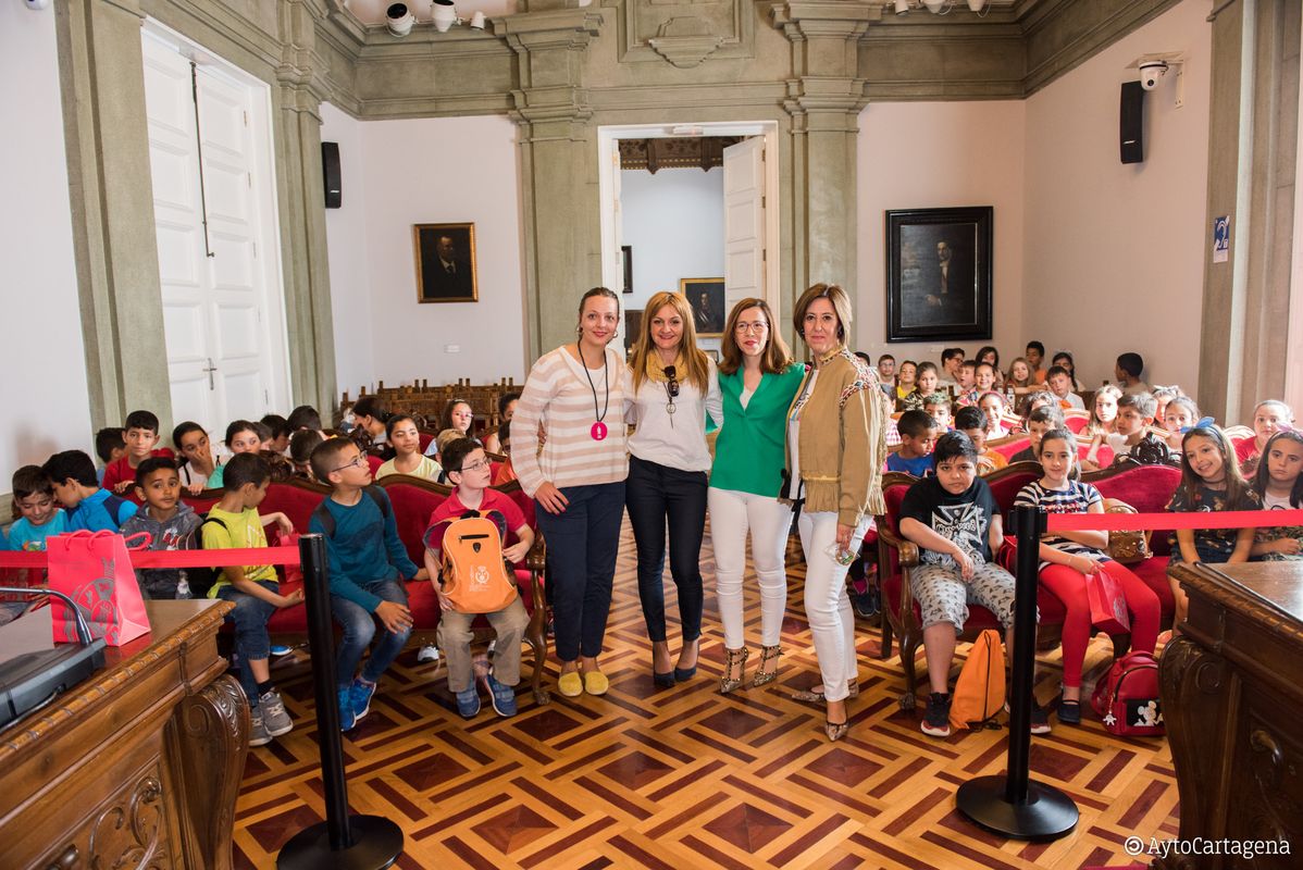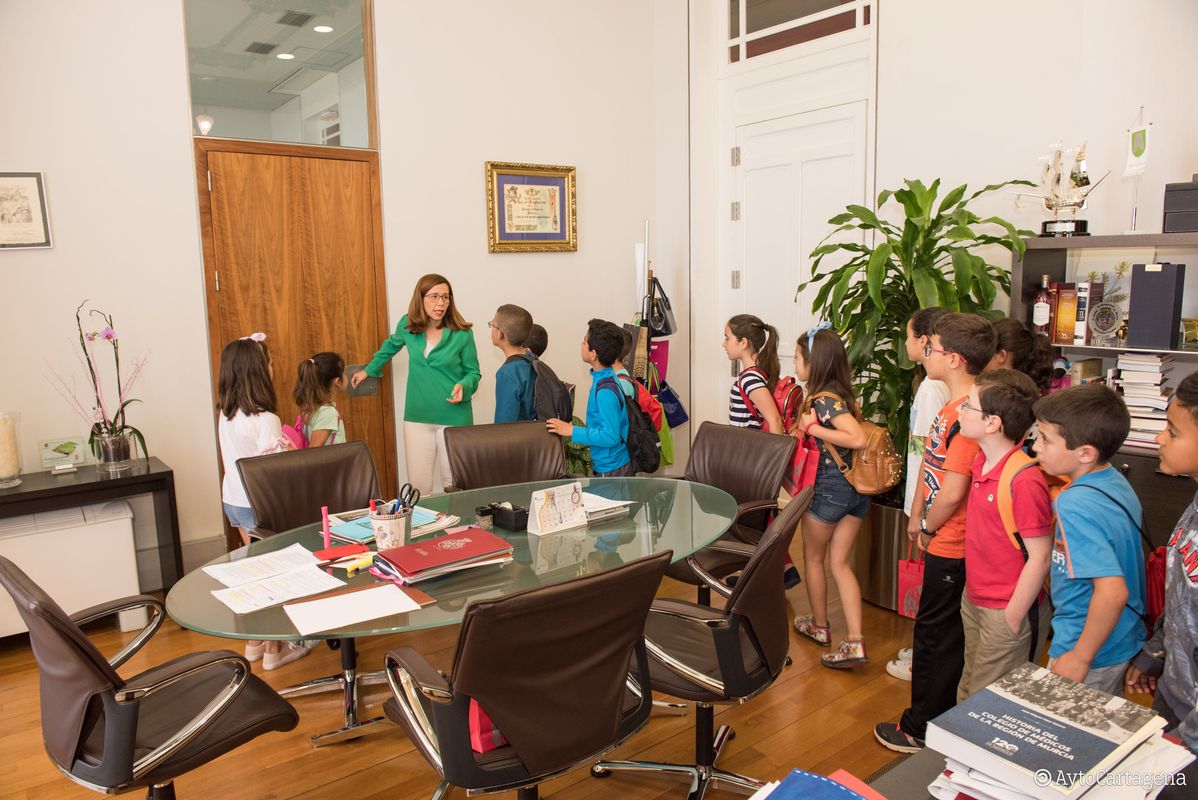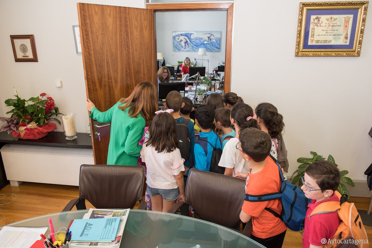 Los sesenta alumnos han podido conocer también las dependencias más privadas de la alcaldesa, su despacho y la sala donde recibe habitualmente las visitas protocolarias. Además, los alumnos del colegio publico San Fulgencio se han llevado un pequeño obsequio como recuerdo de su visita al Palacio Consistorial de Cartagena.