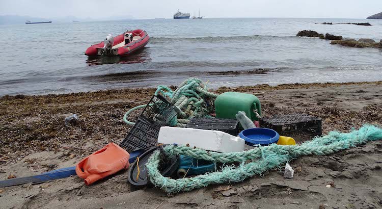 Voluntarios de la asociación y del Programa Mucho Más Mayo retiraron este domingo una quincena de grandes sacos de basura conteniendo más de 500 fragmentos y botellas de plástico, 30 fragmentos de tubos de gotero, más de 300 tapones de botellas de plástico, varias amarras de barcos, 30 zapatos, varias botellas de vidrio, latas, vasos y platos de plástico, envases de comida, cajas de plástico y poliestireno, etc.