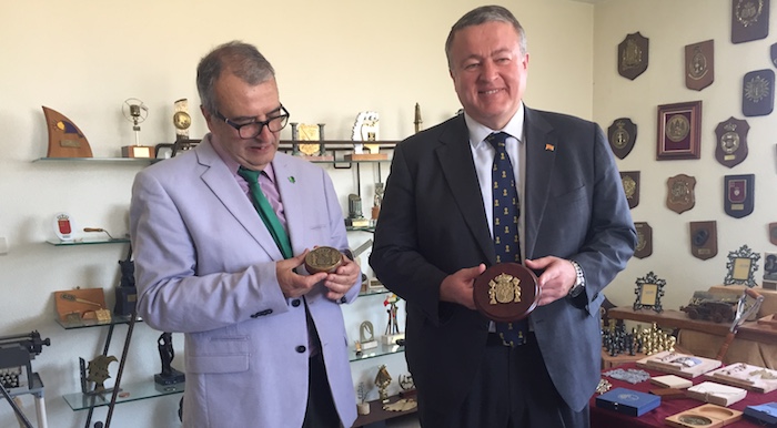 Bernabé ha elogiado la labor que se desarrolla en este centro especial de empleo, “soy un enamorado del trabajo que se realiza aquí, de la labor que desarrollan los profesores, los alumnos y me encanta todas las obras de arte que se elaboran en esta institución”, ha dicho. Ha explicado que su visita ha tenido como objetivo, además de saludar tanto al equipo docente como a los alumnos, el “hacer una selección de cuáles son aquellas distinciones, basadas todas en el escudo de España, que van a protagonizar, las distinciones que les ofreceremos a aquellas visitas ilustres, o a aquellas personas o personalidades que se lo hayan ganado por su buen hacer”.