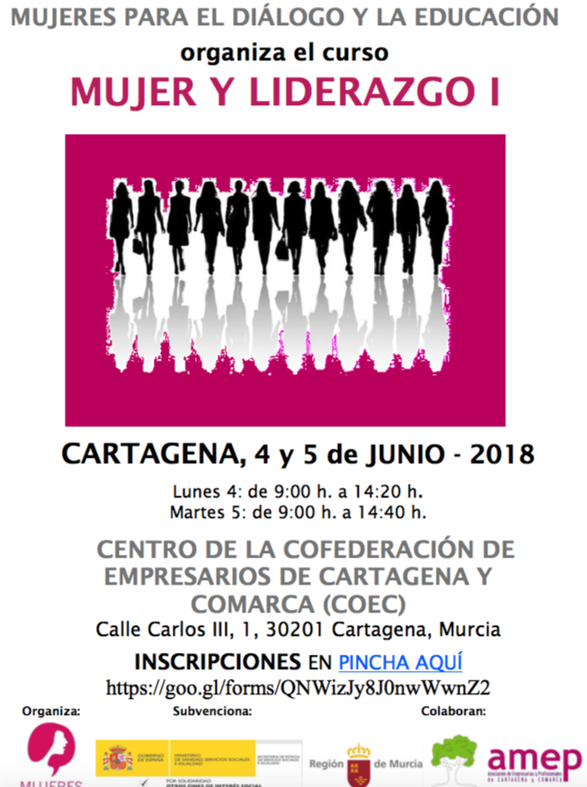 Además de la Asociación de Mujeres Empresarias Profesionales y Directivas de Cartagena y la Asociación de Familias y Mujeres del Medio Rural de Murcia (AFAMMER) el Curso Mujer y Liderazgo I cuenta con el apoyo de Mujeres en Igualdad y está subvencionado por el Ministerio de Sanidad, Servicios Sociales e Igualdad.