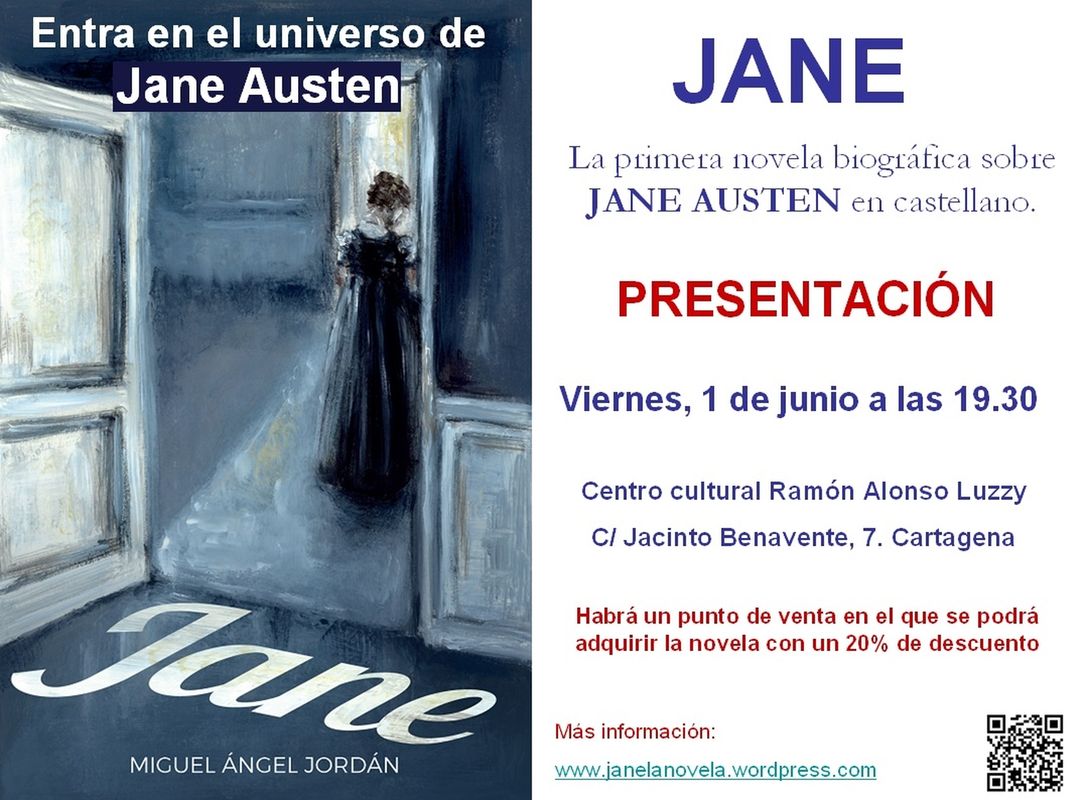 Incluida dentro del programa 'Leer, pensar, imaginar', de la Concejalía de Cultura, este viernes 1 de junio se presenta la novela 'Jane', del escritor cartagenero Miguel Ángel Jordán. La biblioteca Josefina Soria, del Centro Cultural Ramón Alonso Luzzy, acogerá la presentación a las 19:30 horas.