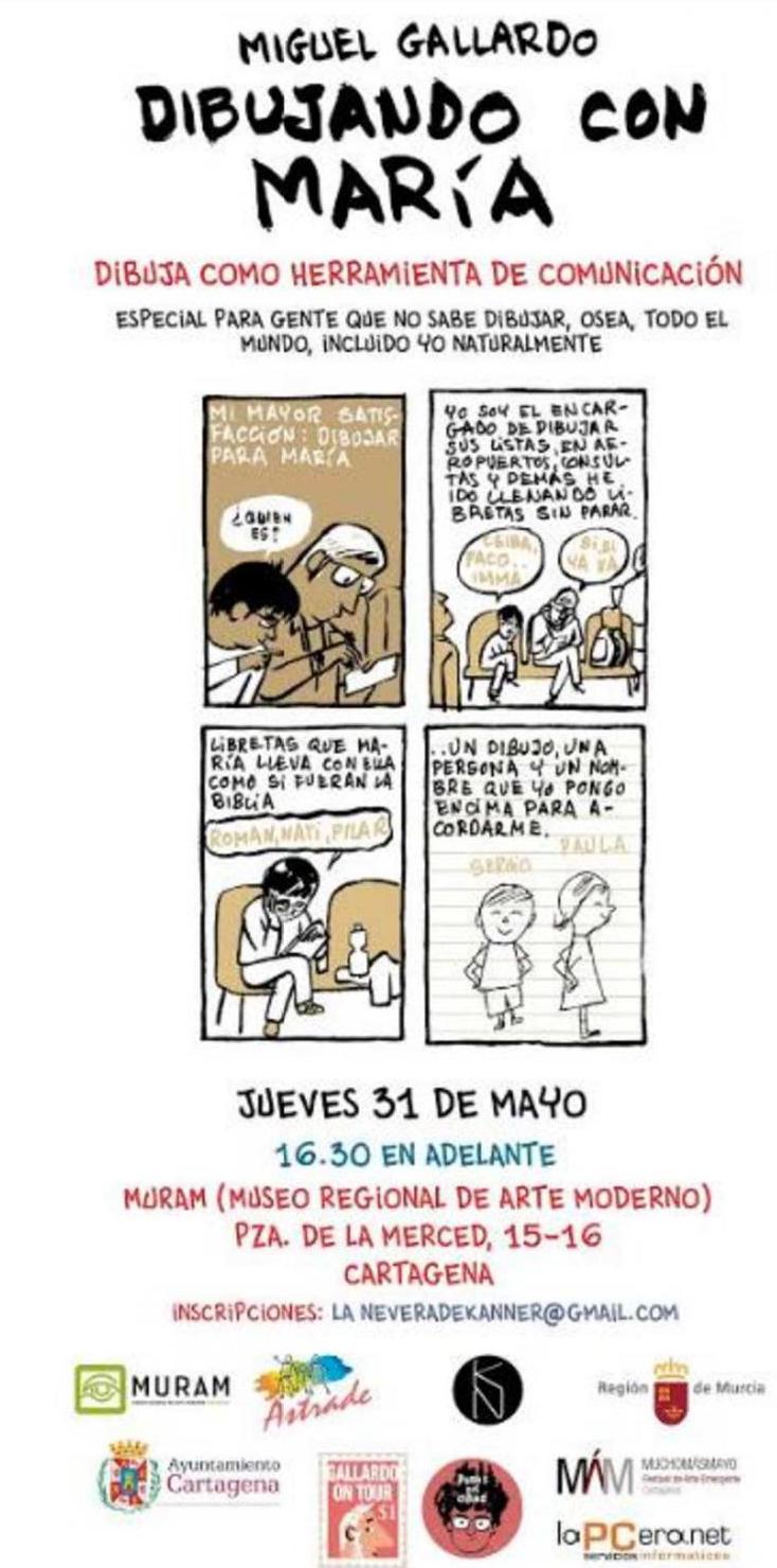El Museo Regional de Arte Moderno de Cartagena organiza este jueves, a las 16.30 horas, la actividad 'Dibujando parea María'. Cuesta 30 euros y es necesaria inscripción previa.