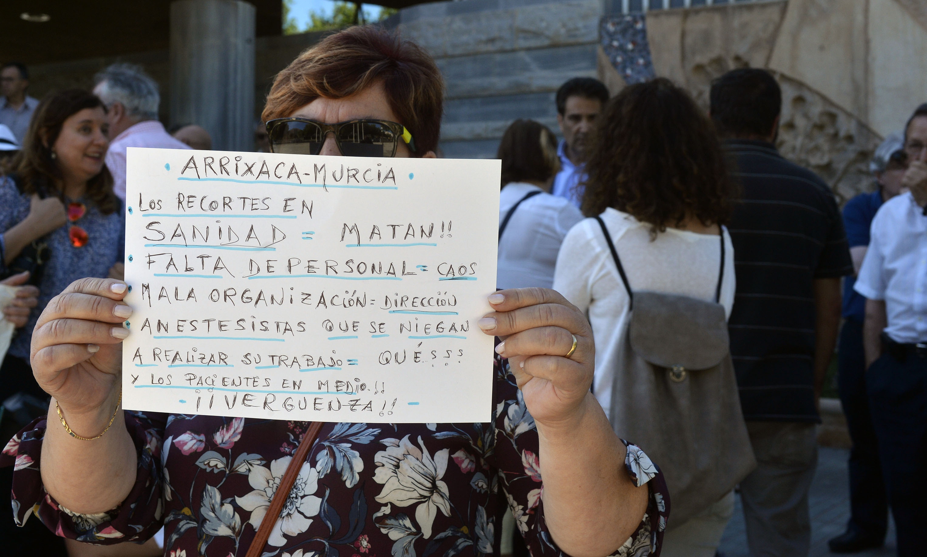 Decenas de personas reclamaron frente a la Asamblea Regional la apertura del Hospital del Rosell. Los manifestantes exigen menos recortes y unos servicios dignos en los hospitales de la Región.