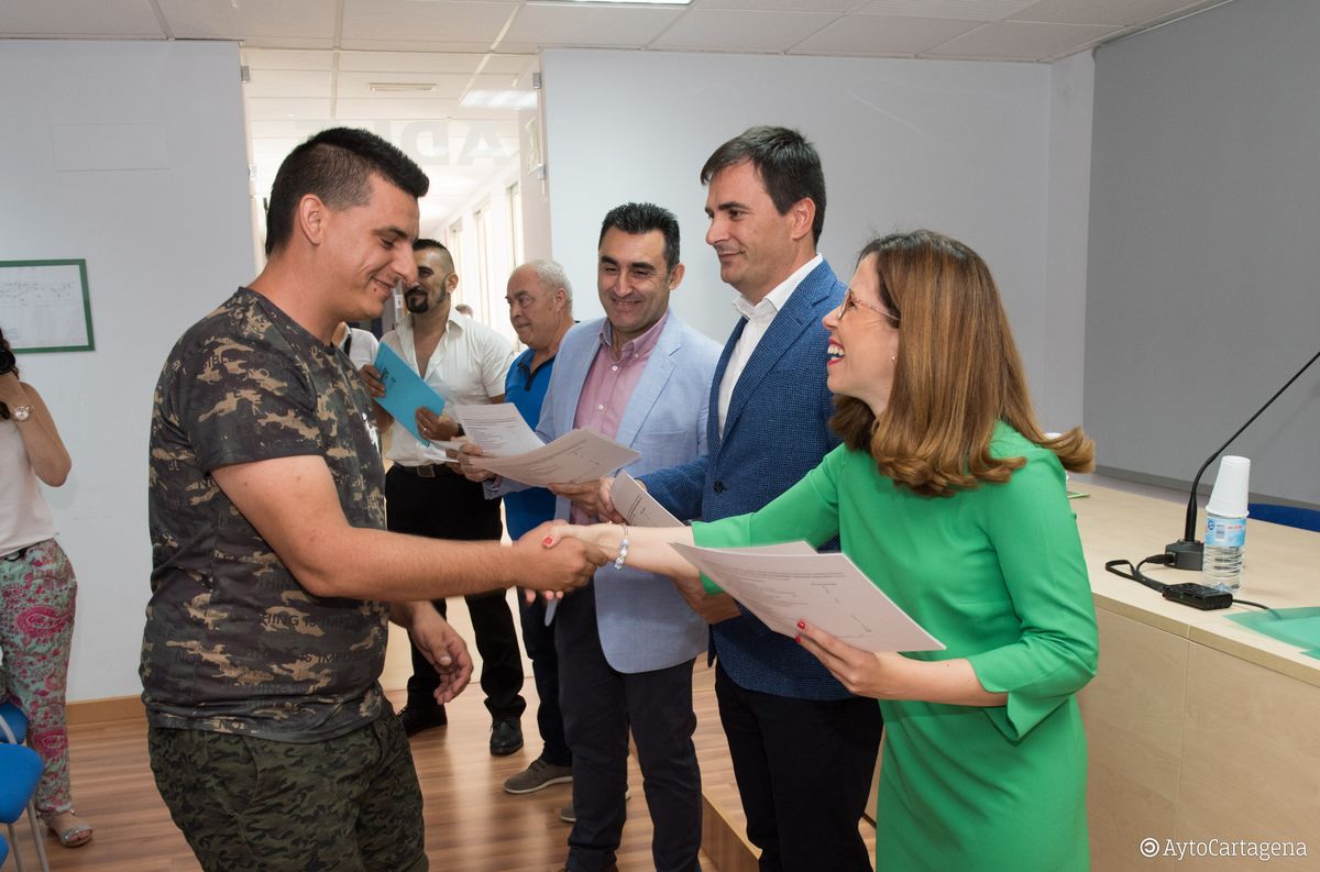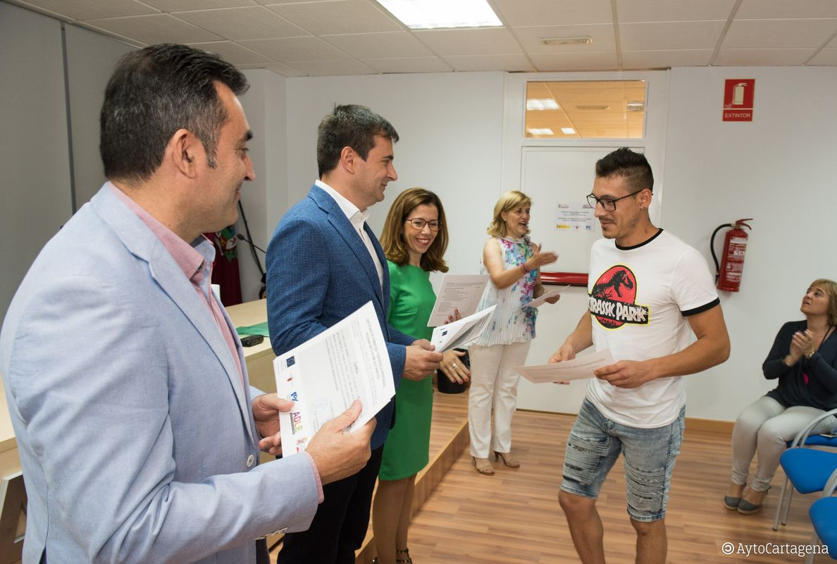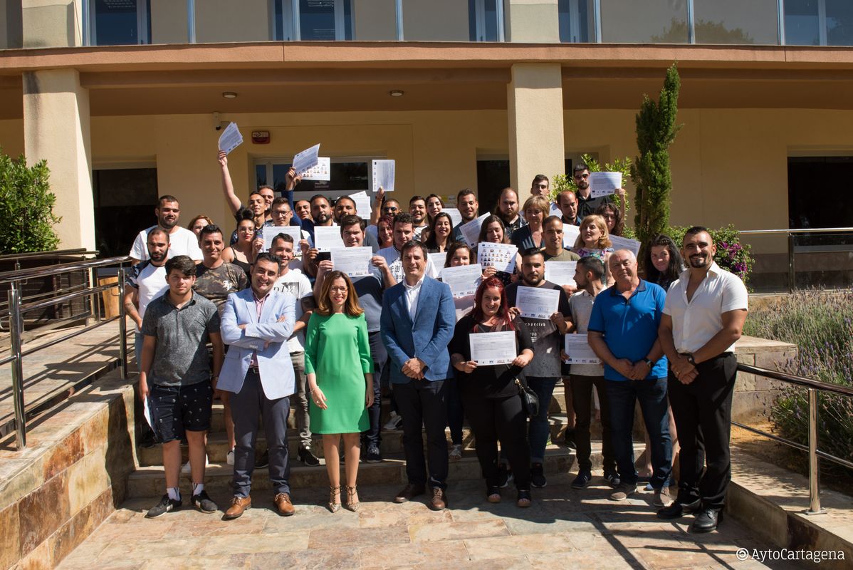 Al acto de clausura han acudido la alcaldesa de Cartagena, Ana Belén Castejón; el gerente de la ADLE, Manuel Mora y el subdirector del Servicio Regional de Empleo y Formación, José Tomás Piñera, quienes han hecho entrega de los diplomas a todos los alumnos que han completado su formación.
