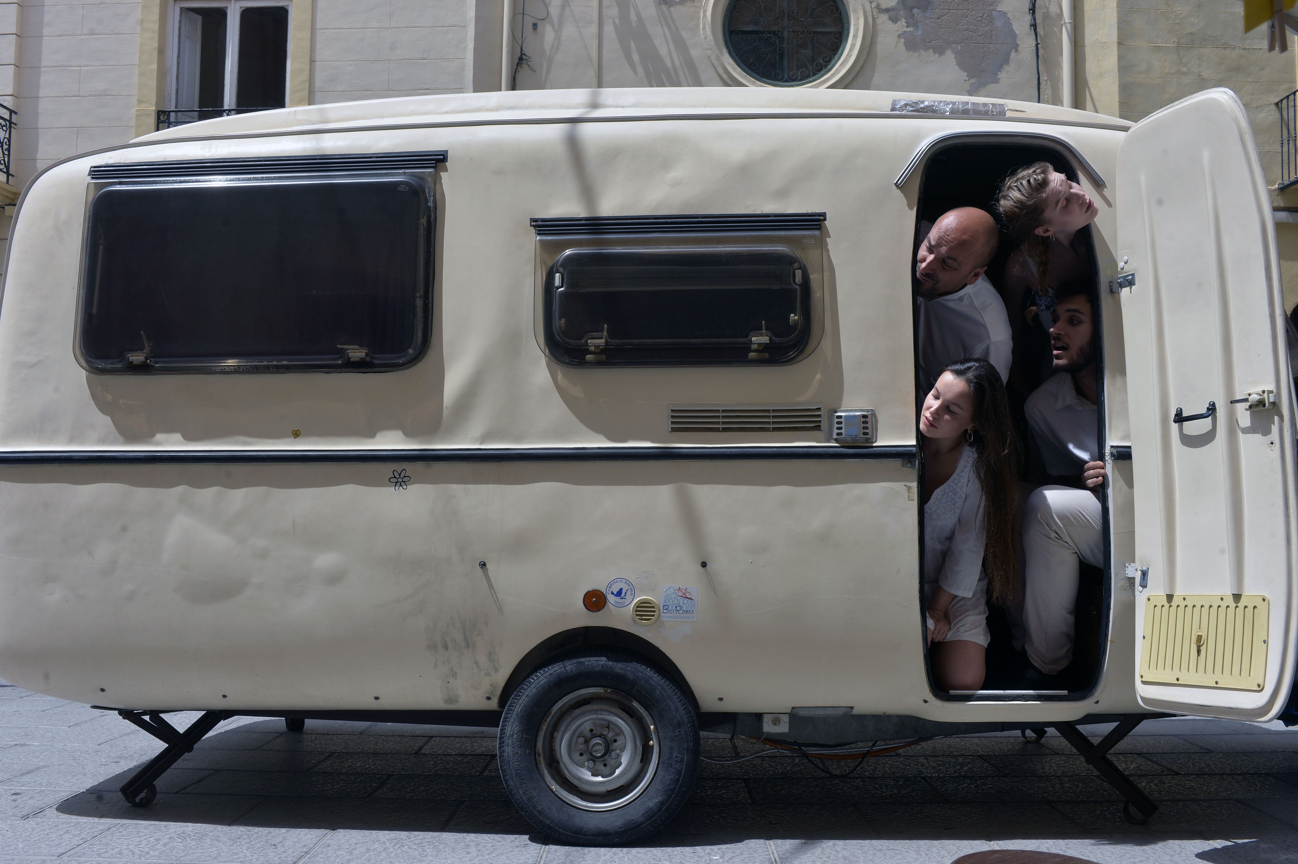 Una familia itinerante instala su caravana en la calle del Aire, esperando recibir tu visita, dentro de la programación del festival Mucho Más Mayo.