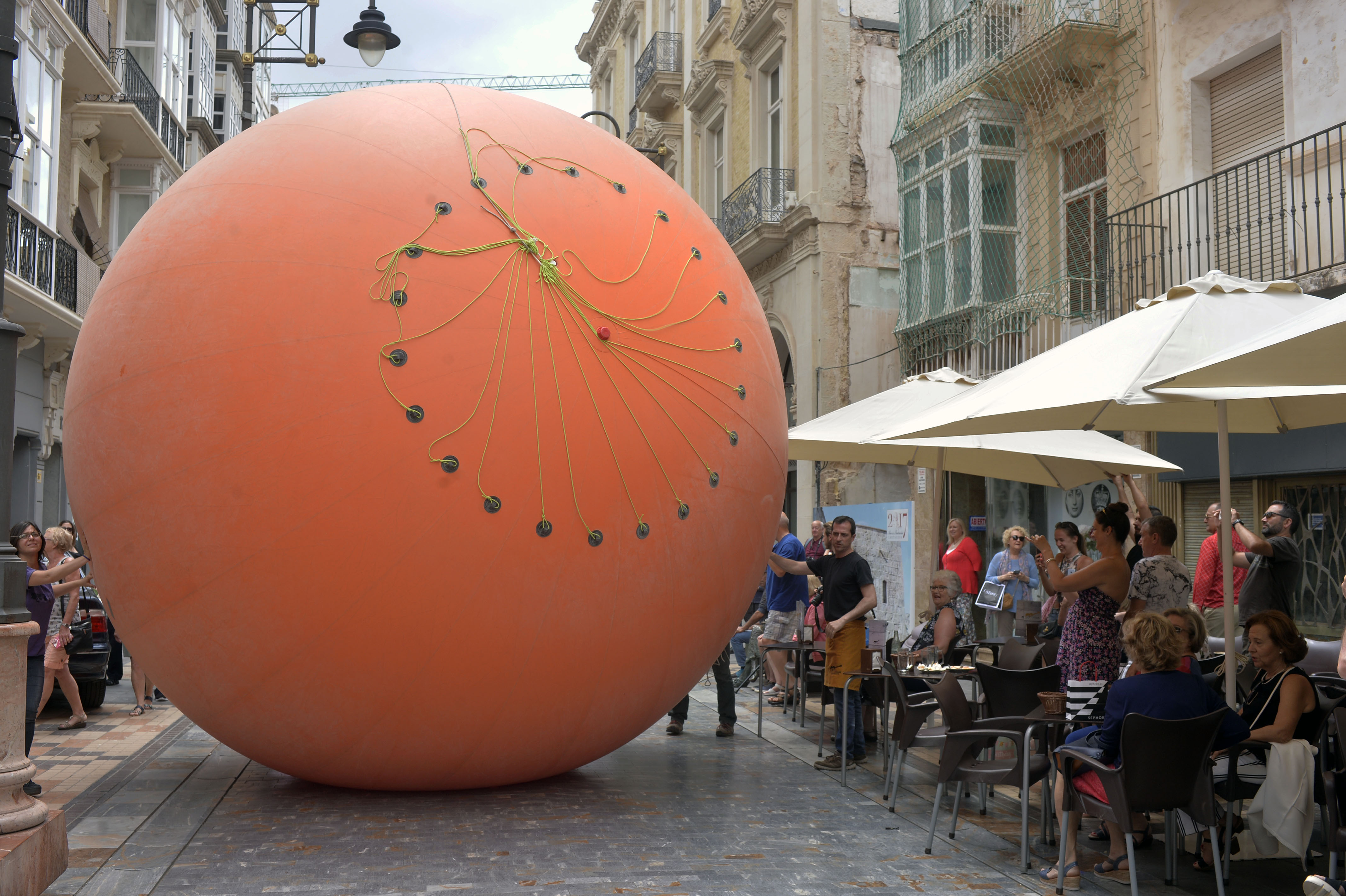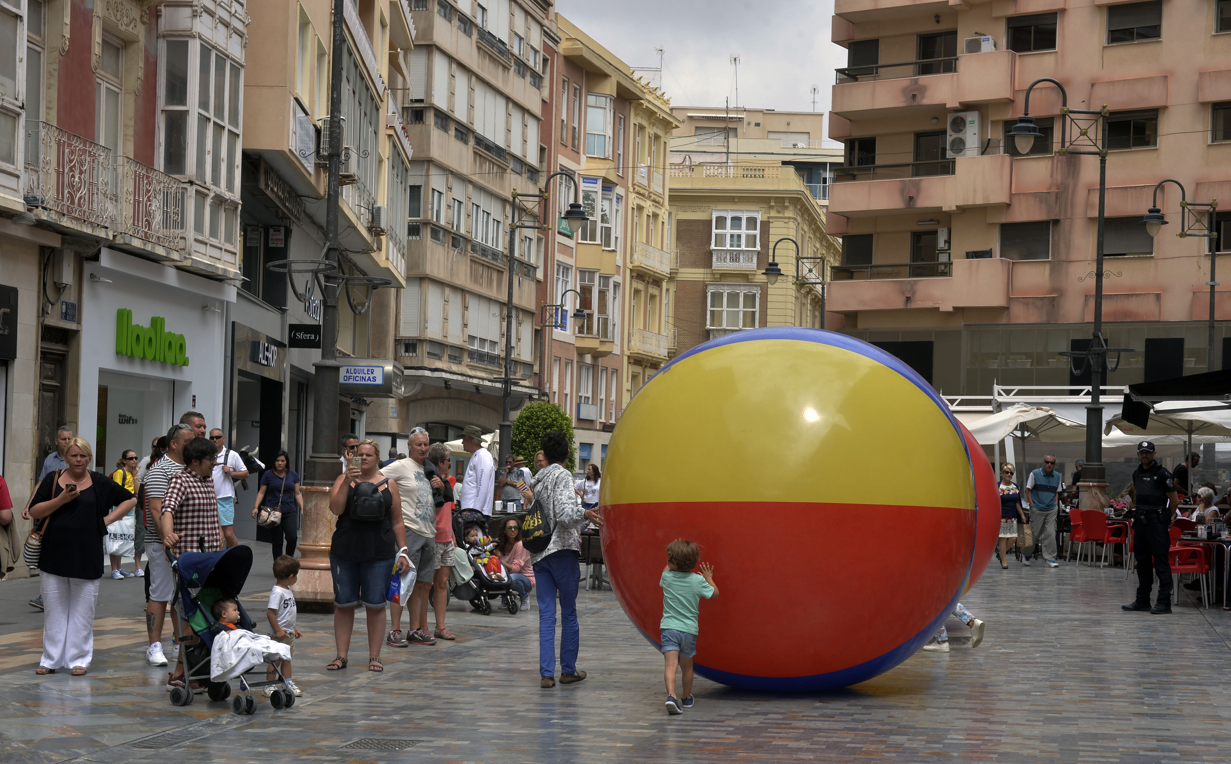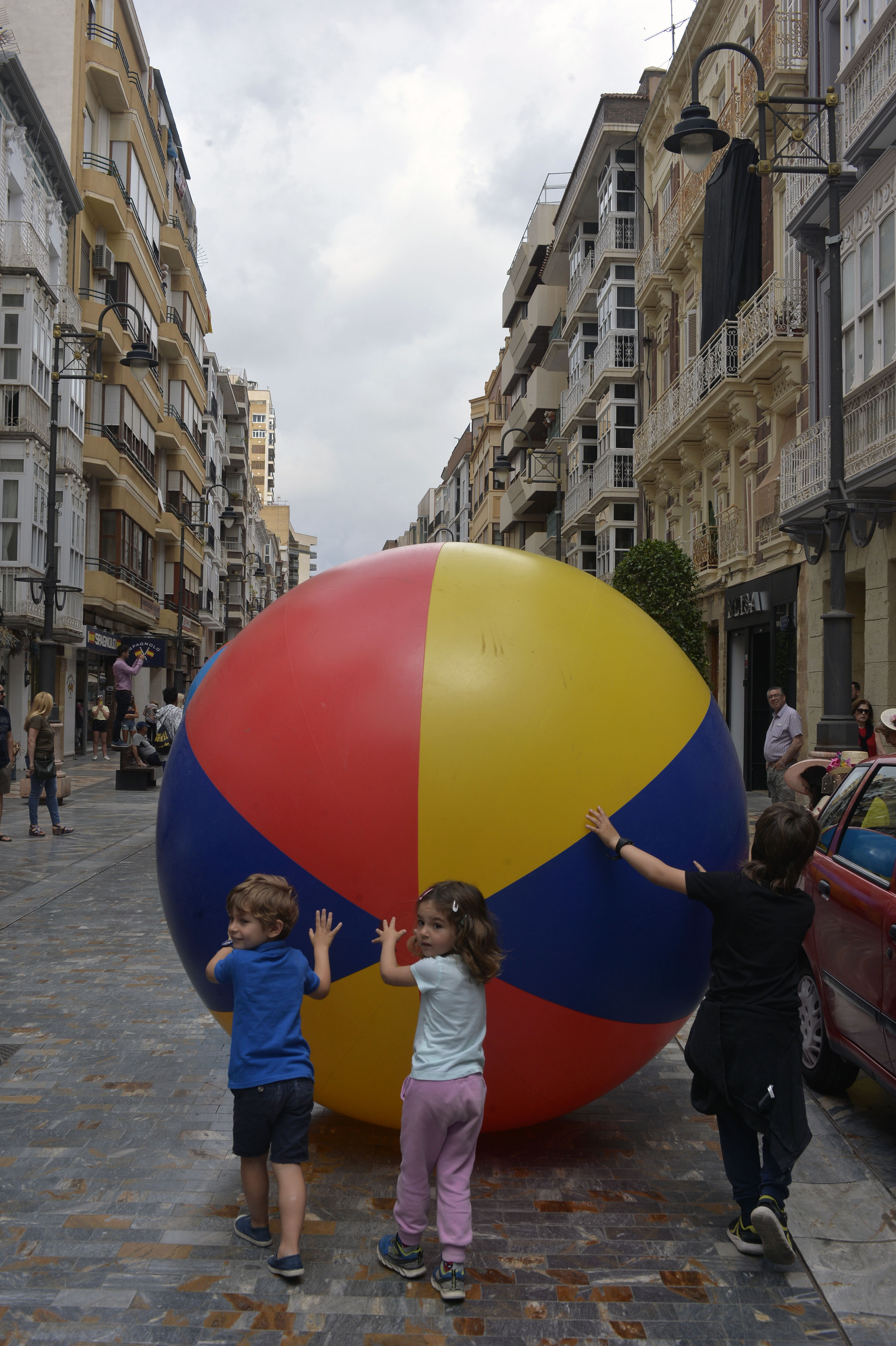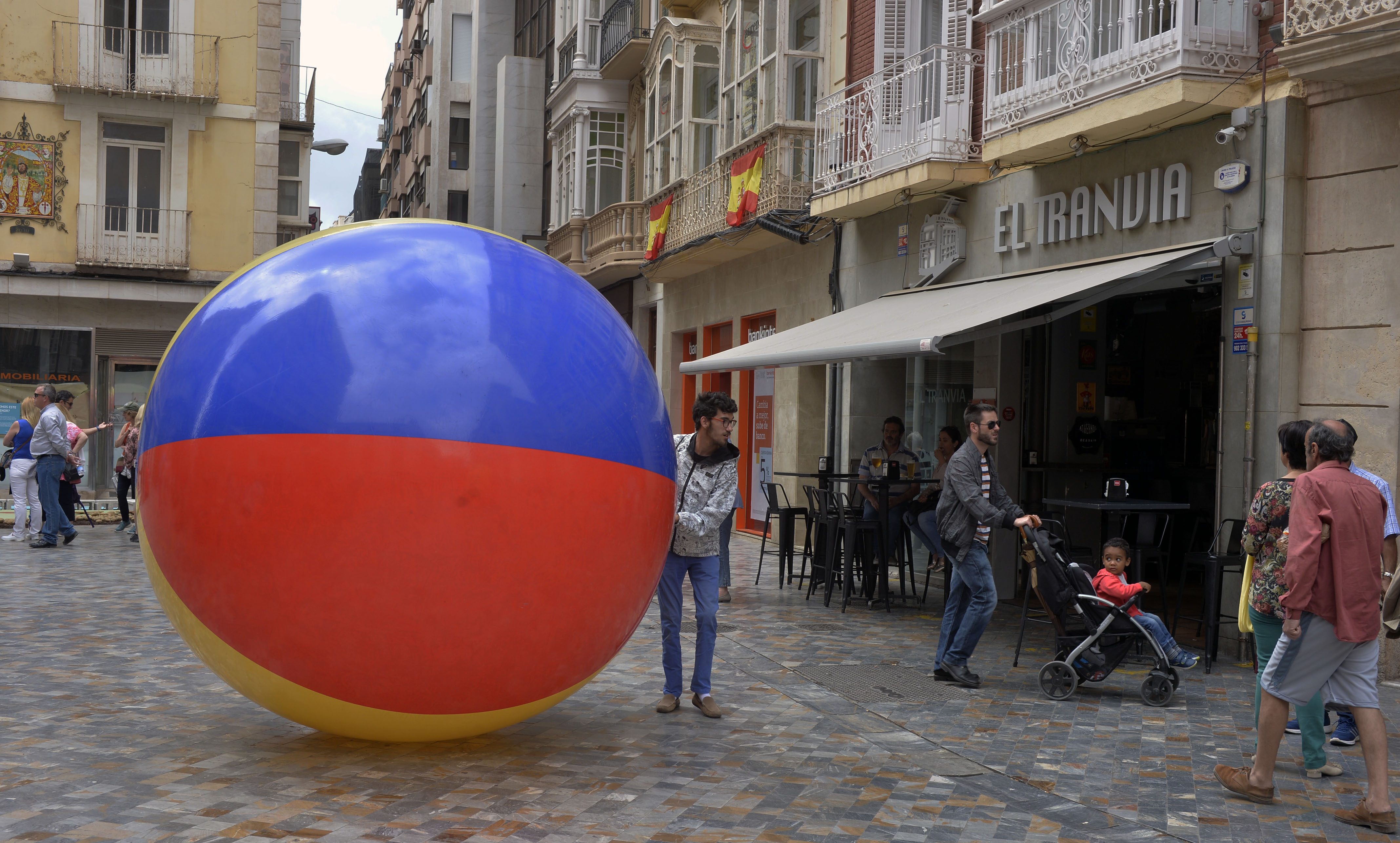 Cinco pelotas de playa gigantes invaden el centro de la ciudad por las calles y avenidas. Por donde circula el ruido, el humo, la contaminación, circulan personas con pelotas enormes que invitan a la sonrisa,el divertimento, la alegría y la ilusión.