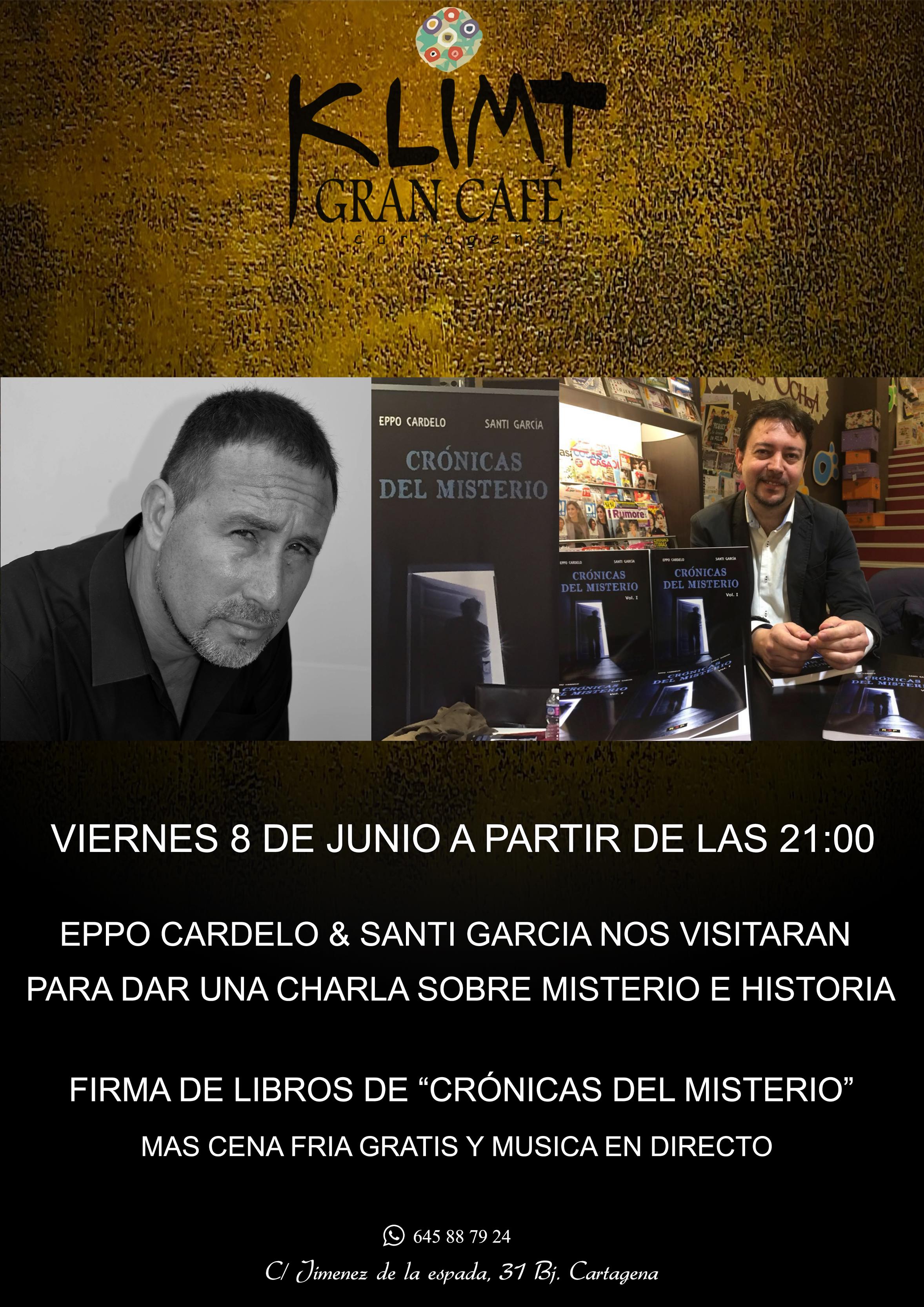 Eppo Cardelo y Santi García presentarán su libro 'Crónicas del Misterio' y hablarán sobre las leyendas de Cartagena este viernes a las 21 horas en Klimt, en la calle Jiménez de la Espada, número 31.