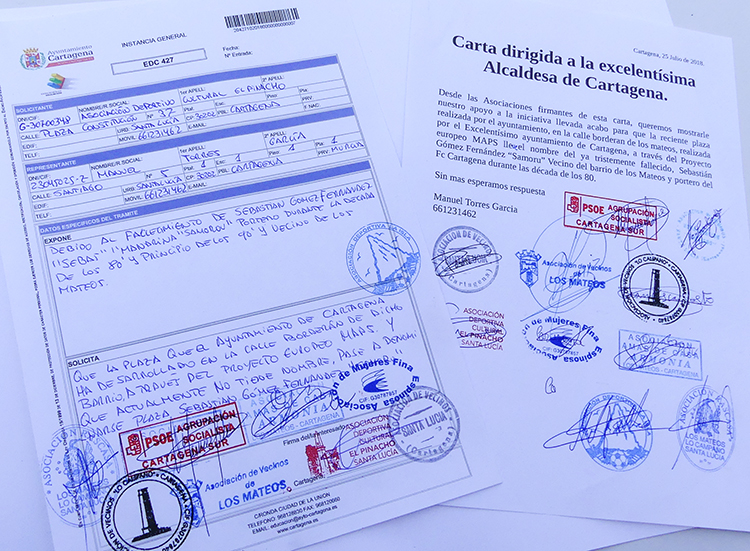 La Asociación Cultural El Pinacho ha presentado en el registro civil del ayuntamiento de Cartagena la propuesta de que la plaza de la calle Borderán lleve el nombre del recordado portero del Efesé de los años ochenta del pasado siglo, fallecido hace unos días, la cual está respaldada por las asociaciones de vecinos de Santa Lucía, Los Mateos y Lo Campano, Rascasa, asociación de amas de casa Armonía, asociación de mujeres Fina Espinosa, agrupación socialista Cartagena Sur y asociación deportiva La Isla.