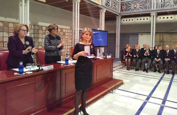 La vicerrectora de Investigación de la Universidad Católica San Antonio, Estrella Núñez, fue la encargada de recoger en la tarde del miércoles 11 la Medalla de Oro que la Academia de Farmacia Santa María de España ha concedido a la UCAM. En el acto, celebrado en la Asamblea Regional, la presidenta de la Academia subrayó la estrecha colaboración de la UCAM con esta institución, y recordó la donación por parte del presidente de esta universidad, José Luis Mendoza, del repostero con el escudo de esta Academia de la Región, que presidió el acto de ayer.