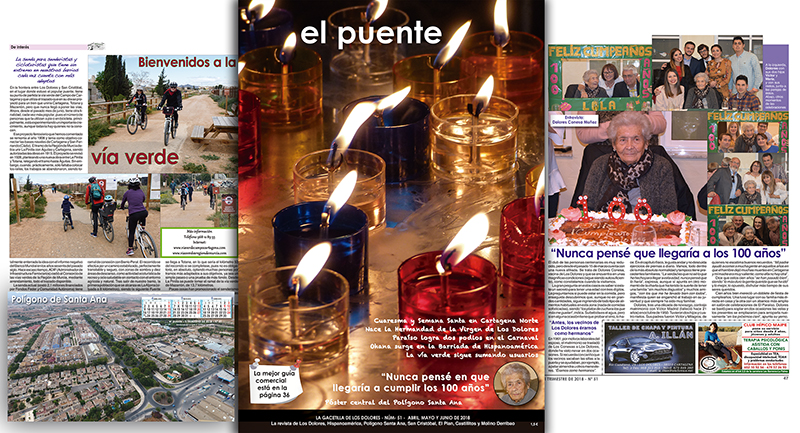 Ya está en la calle el ejemplar número 51 de la publicación en papel (s.e.u.o.) que edita 21DEhoy agenCYA y que abarca a Cartagena Norte y que es la más longeva de la historia de la comarca de las que están dirigidas a los vecinos. Entre los temas de este número está el 100 cumpleaños de Dolores Conesa, la vía verde, especiales de Carnaval y Semana Santa, póster del Polígono Santa Ana, noticias de interés, capítulos de la historia, deportes, fotografías de vecinos, etc.