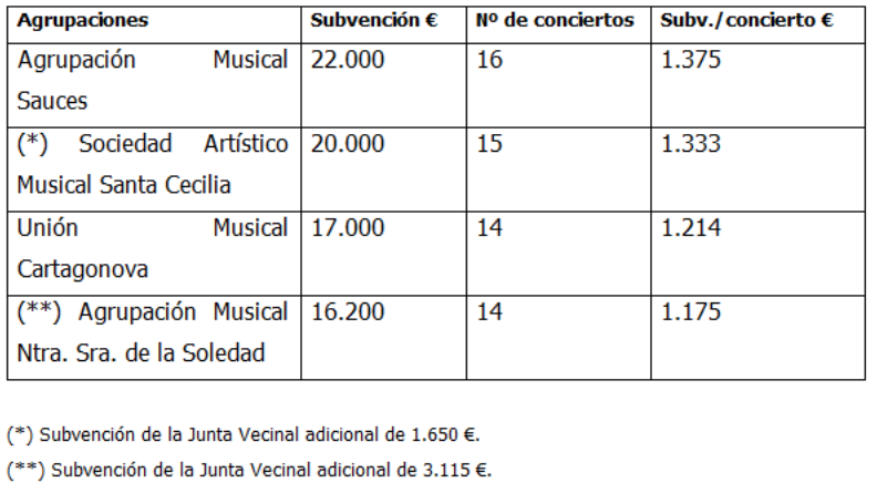 Cartagena Sí Se Puede afirma que el gobierno municipal no reconoce adecuadamente la labor de las agrupaciones musicales de Cartagena, ofreciendo un estudio comparado de las subvenciones que recibieron en 2017 las cuatro agrupaciones que cuenta con banda sinfónica y escuela de música.
