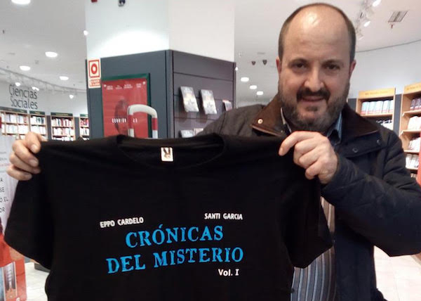Hoy comienza la promoción de la nueva obra de Santiago García y Eppo Cardelo, que aborda seis misterios espacios por la geografía nacional. Entre las 18 y las 20.30 horas habrá una firma de libros de los dos autores en el centro comercial Espacio Mediterráneo, con los que los lectores tendrán la oportunidad de charlar y conversar acerca de las investigaciones realizadas en el libro. Para quienes asistan se realizarán diversos sorteos de regalos, como la camiseta que muestra en la imagen. En la obra se demuestra, por ejemplo, que el Carbono 14 no es un método de datación válido para objetos como, por ejemplo la Sábana Santa. También están zombis, vampiros y la dama de blanco, entre otros.