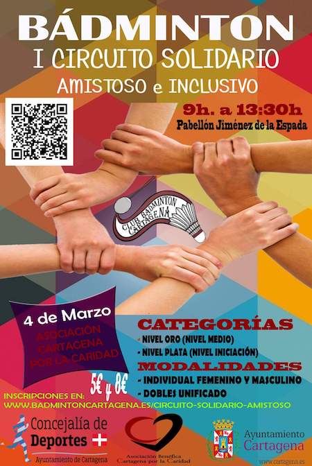 El Club Bádminton Cartagena ha organizado para el próximo 4 de marzo el I Circuito Solidario Amistoso e Inclusivo de esta modalidad deportiva, a beneficio de la Asociación Benéfica Cartagena por la Caridad.