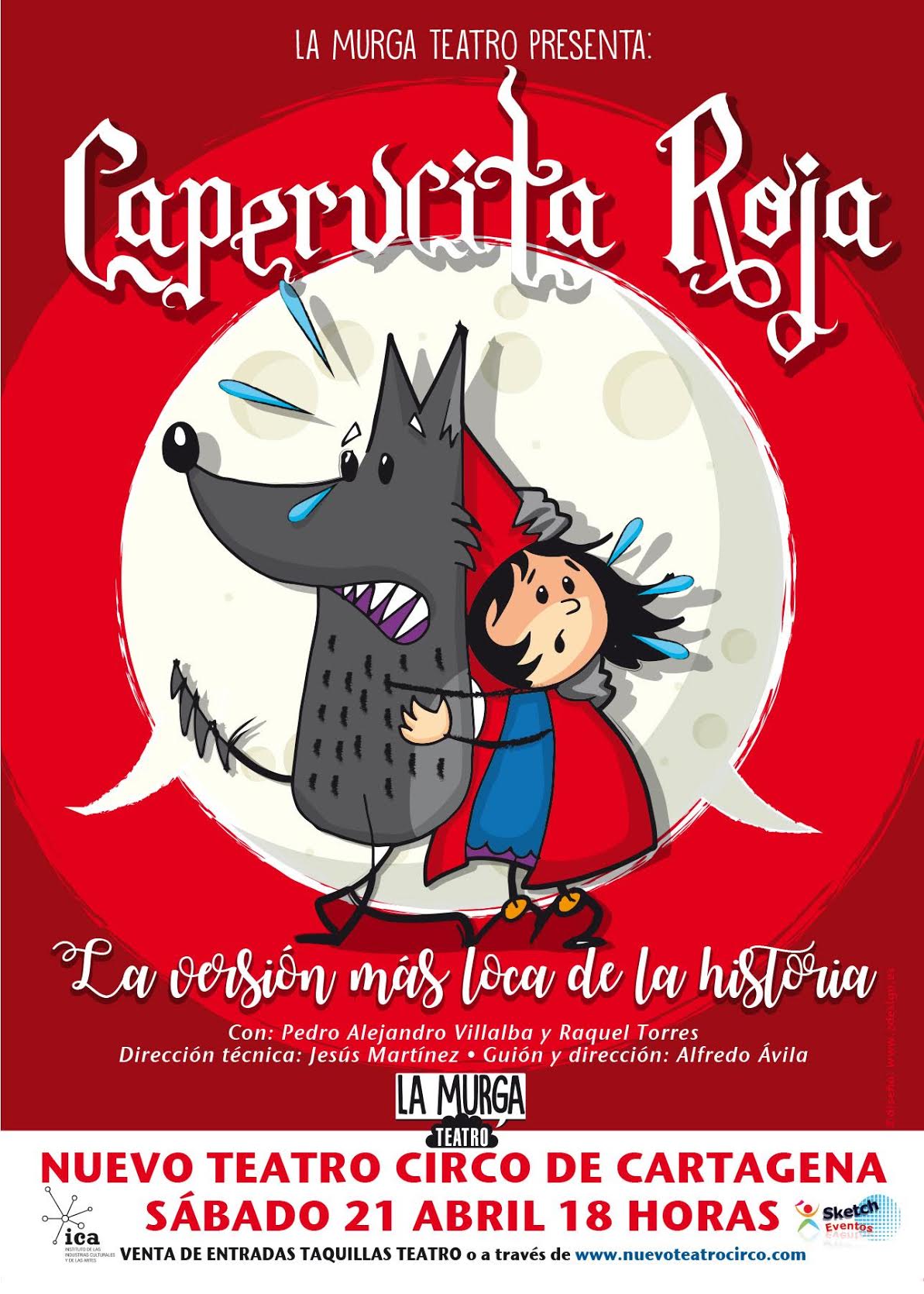 Caperucita Roja, la versión más loca de la historia, la última producción de la compañía cartagenera La Murga Teatro llegará a nuestra ciudad y al Nuevo Teatro Circo el próximo sábado 21 de abril a las 18 horas. Esta actuación se enmarca dentro de la gira nacional que está haciendo dicha compañía con este espectáculo.