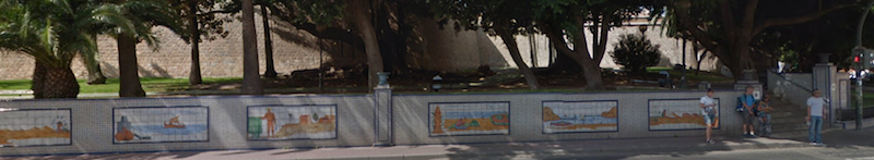 Así queda el parterre de la avenida Trovero María donde figuraban azulejos con escenas históricas de Cartagena tras los trabajos llevados a cabo en los últimos meses, habiendo desaparecido esas imágenes que fueron instaladas en 1989, siendo alcalde Antonio Vallejo. La imagen superior obtenida de Google Maps muestra cómo estaba y las restantes cómo ha quedado.