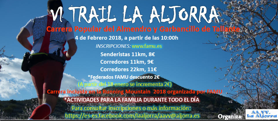 La Aljorra celebra por sexto año su mayor evento deportivo, la Trail, el 4 de febrero. Esta carrera popular está organizada por la Asociación de Vecinos de la localidad y cuenta con la colaboración de la Concejalía de Deportes del Ayuntamiento de Cartagena.