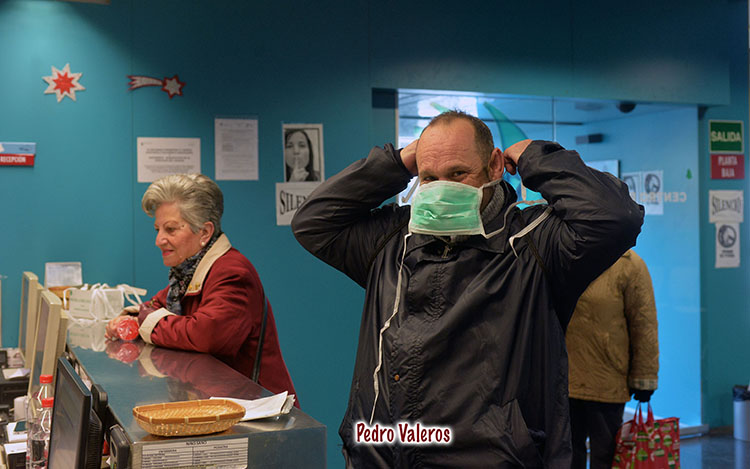 El personal de los consultorios de Cartagena ofrece a los pacientes la posibilidad de colocarse una mascarilla para evitar el contagio ante una epidemia de gripe que está generando un millar de casos diarios en la Región de Murcia. La medida de facilitar mascarillas comenzó en las plantas del hospital del Santa Lucía y ya se extiende por consultorios como el de Cartagena Centro, como muestra la imagen.