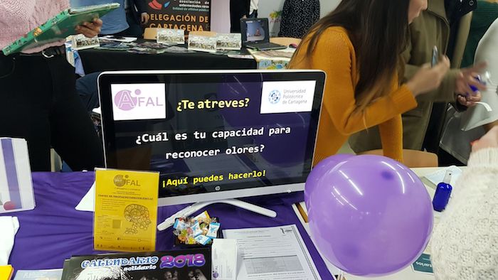 La Asociación de Familiares y Amigos de Enfermos de Alzheimer de Cartagena y Comarca, Afal ha presentado en las V Jornadas y Feria de la Solidaridad y la Inclusión Social un proyecto de investigación sobre el reconocimiento de olores como terapias alternativas para los enfermos con deterioro cognitivo. El proyecto, en el que colabora la Escuela de Agrónomos, pretende averiguar “si con el reconocimiento de olores se puede diagnosticar precozmente alguna alteración cognitiva” según ha explicado el gerente de Afal, Raúl Nieto. Se trata de cultivar plantas aromáticas con el fin de realizar talleres de reconocimiento de olores con pacientes con enfermedades neurodegenerativas.