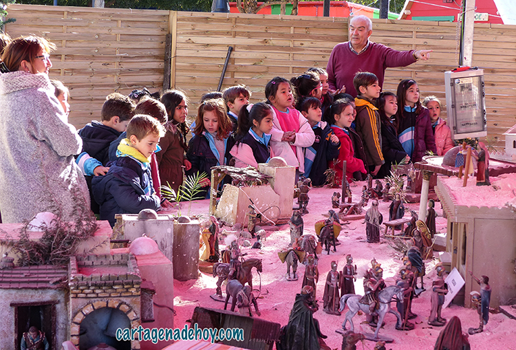El gran nacimiento creado por la comparsa en su sede de la calle Roma fue inaugurado en una amena jornada en la que actuaron el coro de la iglesia de San Ginés y el dúo Carolina y Toni, con villancicos, junto al grupo coreográfico Paraíso. También estuvo un grupo de castañeras. Este Belén, que está incluido en la novedosa ruta de belenes de Cartagena, también tiene un lado solidario y es punto de recogida de alimentos para Cáritas.