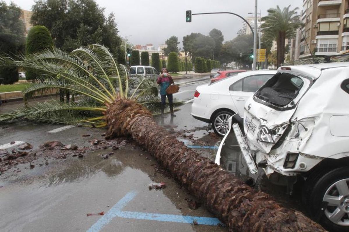 El vendaval que durante unas horas ha azotado al municipio ha provocado el cierre del puerto, dos heridos leves, la caída de un árbol sobre el quiosco de Tentegorra, daños en la puerta del centro comercial Cénit y numerosas caídas de ramas y objetos. Los bomberos han protagonizado una de sus jornadas con más salidas de su historia. Cartagena ha sido el municipio más afectado por el temporal en la Región.