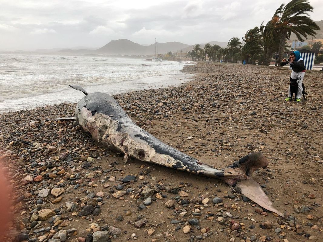 El Centro de Coordinación de Emergencias 1-1-2 Región de Murcia ha recibido una llamada a las 8:56 horasinformando de la localización de una ballena calderón, de seis metros de longitud, muerta varada en la orilla de la playa La Azohía en Cartagena, frente al centro de buceo Rivemar.