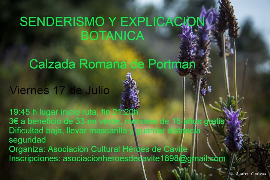 Asociación cultural ‘Héroes de Cavite’ propone para este viernes una ruta senderista con explicación botánica, que abarca la calzada romana de Portmán. El precio por persona es de tres euros, que irán a beneficio del proyecto ’33 en verde’ de reforestación en la Sierra Minera. Es gratuita para los menores de 18 años. Leer más: Conoce la vegetación autóctona del Mediterráneo