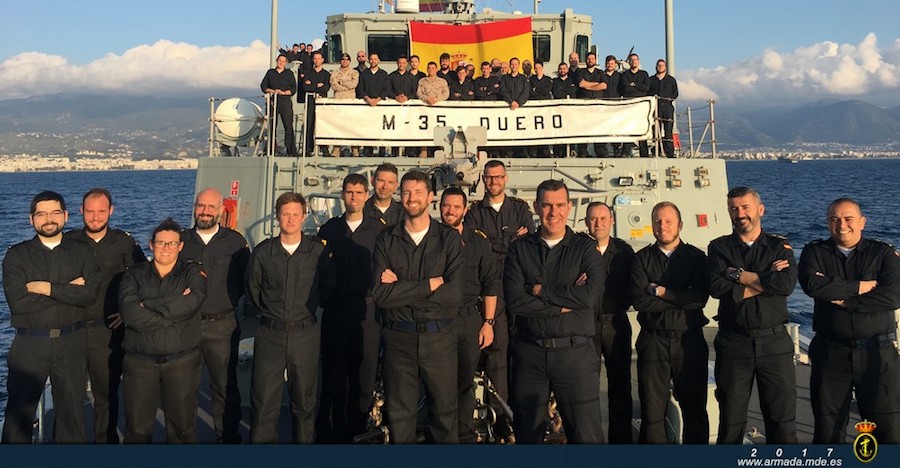 Cuarenta y cinco elementos de sujeta-mascarillas elaborados por Juanjo Carrillo ha sido entregados por el periódico de Cartagena y su gente a la tripulación del cazaminas 'Duero'.