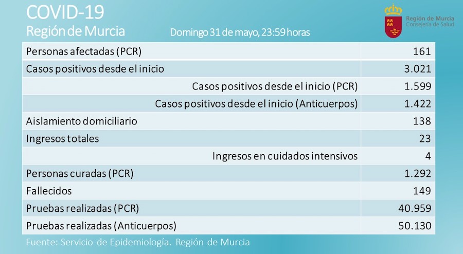 El ministerio de Sanidad informa que el número de nuevos casos en un día es de 71 y en la Región de Murcia se llevan once días sin muertes y dos consecutivos sin nuevos infectados.