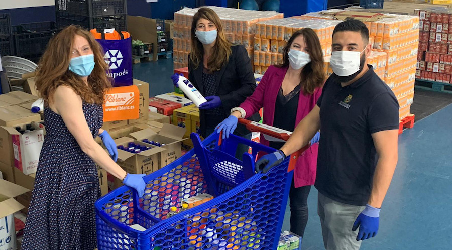El dispositivo municipal de emergencia social, que sigue abierto y en funcionamiento en el Pabellón Central de Deportes de Wssell de Guimbarda, ha recibido una donación de más de 5.300 artículos de primera necesidad, en este caso de la mano de Riblanc Seguros, empresa del Grupo Campoes Servicios Integrales XXI SL de Torre Pacheco, que desarrolla su labor en el sector agrícola.