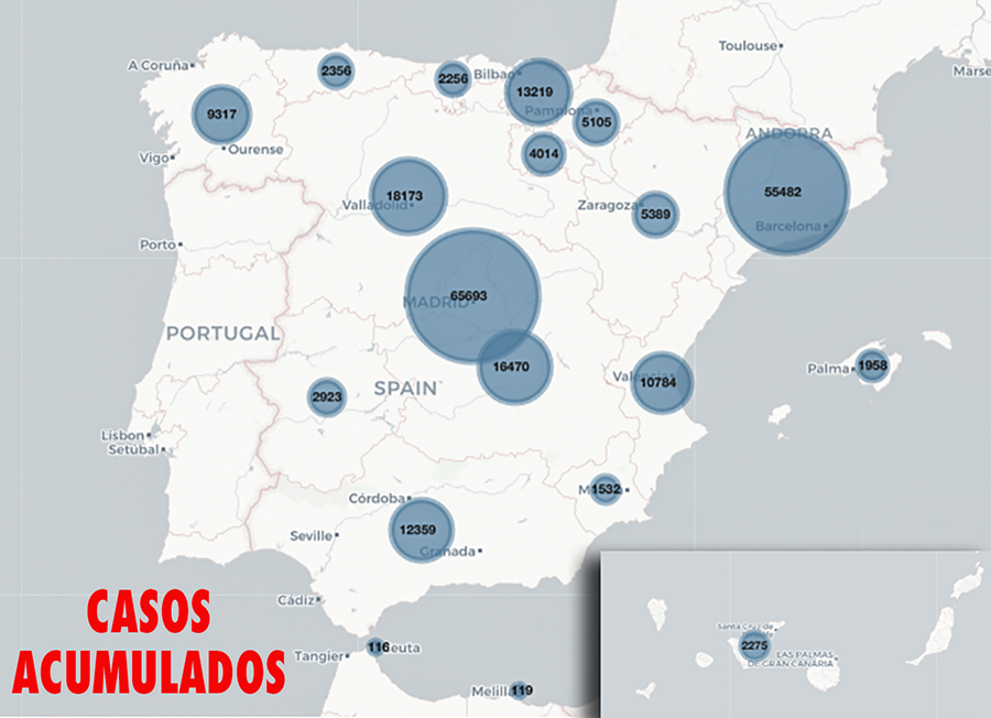 Casos: 229.540. Recuperados: 143.374. Hospitalizados: 124.225. UCI: 11.464. Fallecidos: 27.321.