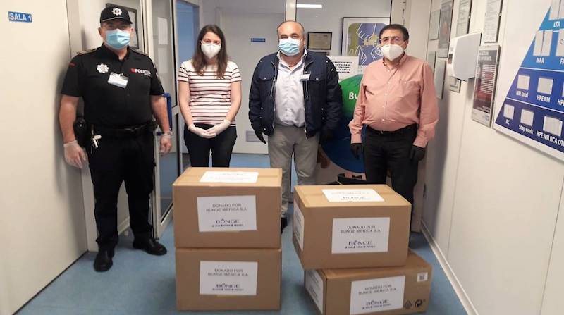 El tejido empresarial del municipio de Cartagena sigue dando muestras inequívocas de solidaridad y esta semana la empresa Bunge Ibérica entregó un cargamento de dos mil unidades de mascarillas FPP2 en el Parque de Seguridad, que serán repartidas entre los efectivos de Policía Local y Protección Civil ya que, debido la función que desempeñan, su exposición es mayor que la del resto de trabajadores municipales.