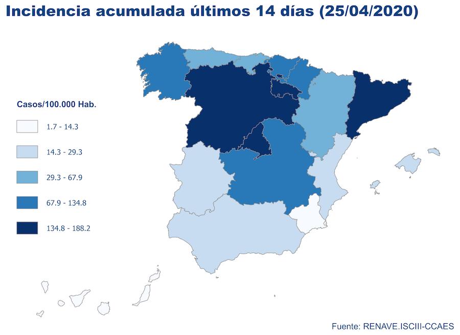 Casos totales: 207.634. Casos en las últimas 24 horas: 1.729 (+0,8%). Recuperados: 98.732. Fallecidos: 23.199. Las 288 muertes por coronavirus supone que la cifra baje de la barrera de los trescientos y se ponga a la altura desde el registro del 28 de marzo. Altas médicas han recibido el último día 3.024 enfermos.
