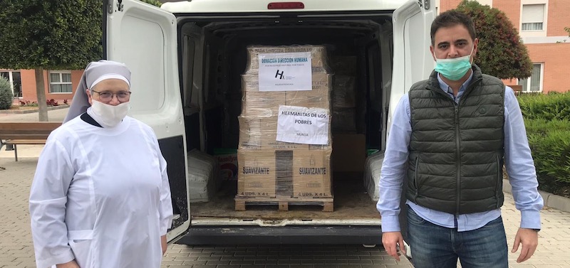 La Asociación Dirección Humana de la Región de Murcia ha entregado un total de 1.200 mascarillas sanitarias y 1.000 kilos de productos de limpieza y desinfección a los centros de mayores de Murcia y Cartagena gestionados por las Hermanitas de los Pobres.