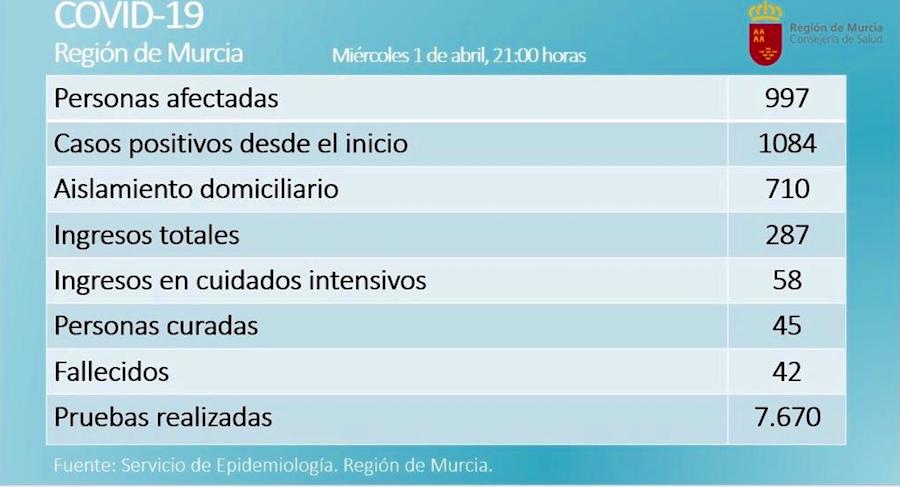 Los datos facilitados por la consejería de Sanidad reflejan que las defunciones se sitúan en 45, mientras que las personas curadas en las últimas 24 horas pasa de 43 a 45. En cuanto a ingresados en UCI la cifra es muy similar al día anterior, pues se ha pasado de 57 a 58.