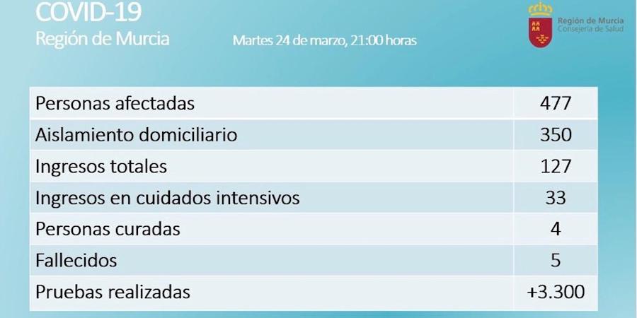 Los datos facilitados esta noche reflejan que tres personas infectadas por el coronavirus han perdido la vida en las últimas 24 horas, en las que los casos se han disparado con 92 más, situándose ahora la cifra en 477, de los que en UCI se pasa de 26 a 33 ingresos. Por contra, se pasa de uno a cuatro personas curadas.