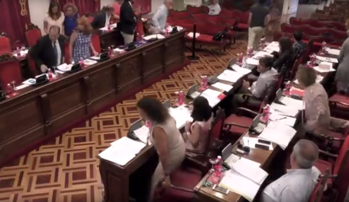 La imagen adjunta muestra el momento en que se levantaban los concejales al escuchar lo que estaba sucediendo
