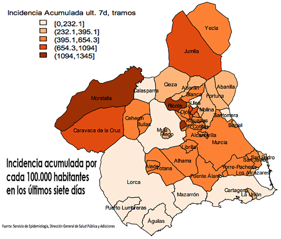 • Cartagena, con 182, muy por debajo de la tasa media regional de contagio, situada en 381