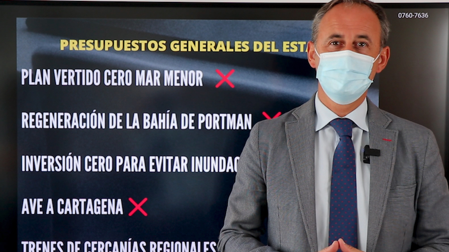 El ejecutivo de la Comunidad Autónoma lamenta que el Presupuesto General del Estado para 2021 "vuelva a situar a la Región a la cola de toda España", indica, apuntando que se refleja en como la nula inversión en el plan de vertido cero del Mar Menor y en las infraestructura judiciales y ferroviarias, además de que no incluye un Centro de Acogida Temporal para Extranjeros (CATE) en Cartagena.
