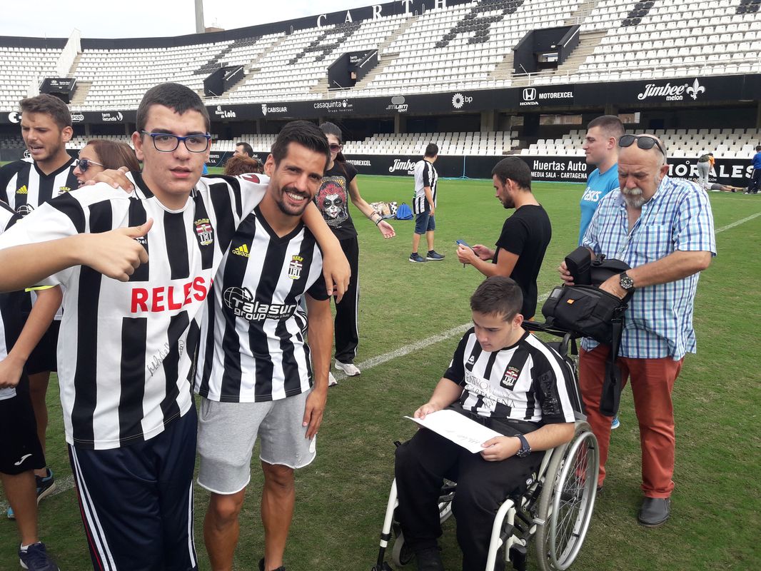 Los jugadores del F.C. Cartagena recibieron en el Estadio Municipal Cartagonova la visita de una representación de alumnos y profesores del Centro Público de Educación Especial Primitiva López.