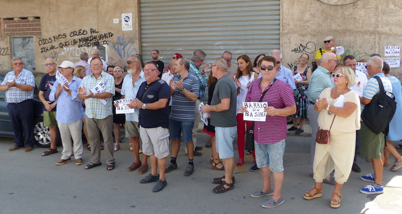 Unas cuarenta personas se han concentrado esta mañana en la calle Recoletos del barrio de San Antonio Abad para "exigir la limpieza de todos los solares, pues hay unos treinta denunciados y no podemos seguir con esos espacios insalubres y llenos de plagas. Los vecinos no queremos ser ciudadanos de segunda y sí más parques y menos solares insolubres. Seguiremos luchando por ese objetivo. ¡Queremos que se cumpla la ley!", ha expresado por megafonía el presidente de la Asociación de Vecinos, Asensio Albaladejo.