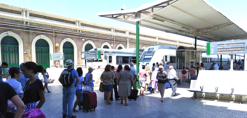 El final de julio y la llegada de agosto no sólo provoca un aumento del tráfico en las carreteras, pues también se da en otros medios de transporte, como es el tren. Valga como muestra esta imagen de la cola para acceder al ferrocarril que esta tarde ha salido con destino a Madrid.