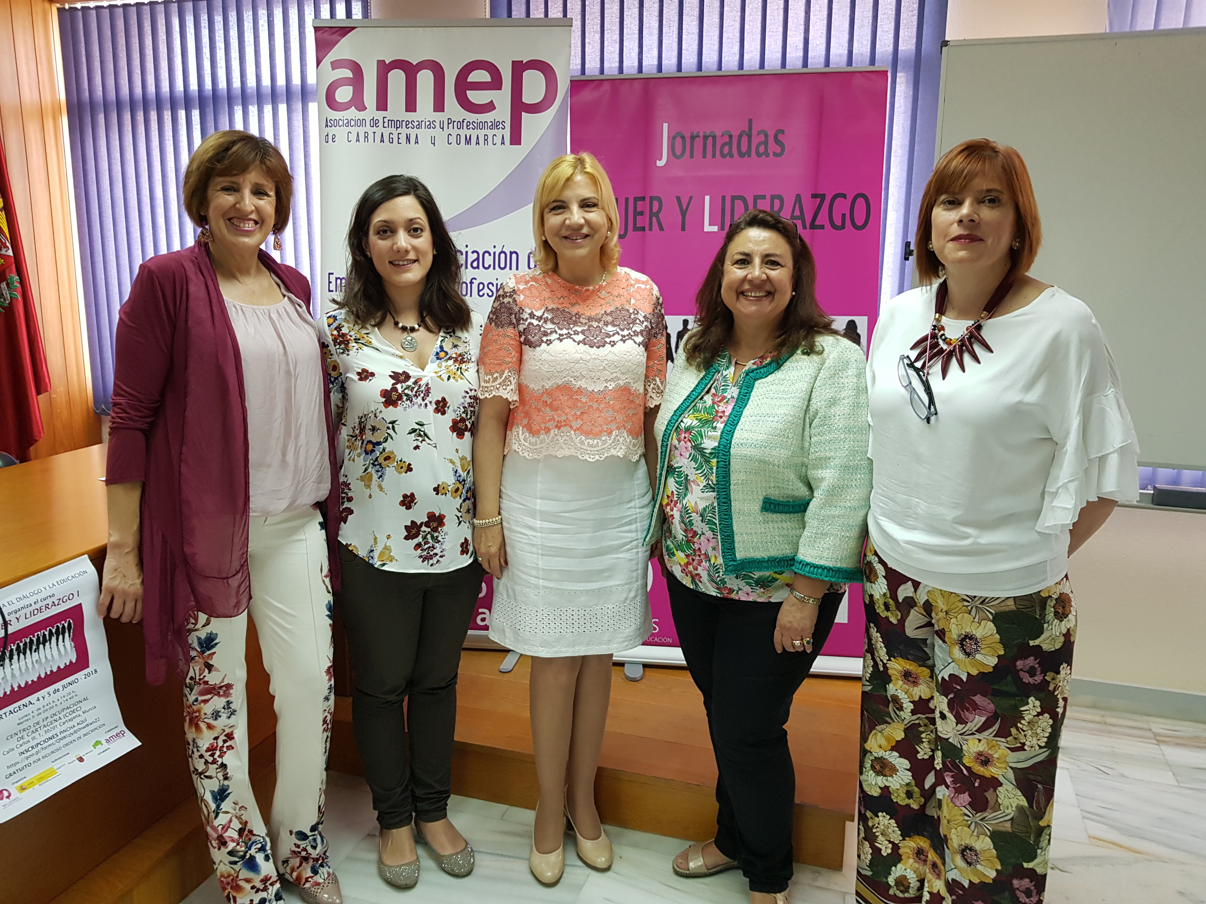 La consejera de Familia e Igualdad de Oportunidades, Violante Tomás, junto a la presidenta de la asociación ‘Mujeres para el diálogo y la educación’, Giovanna Gutiérrez de Calderón, inauguró hoy en Cartagena el curso ‘Mujer y liderazgo I’, donde destacó la necesidad de contar con equipos directivos de mujeres y hombres.