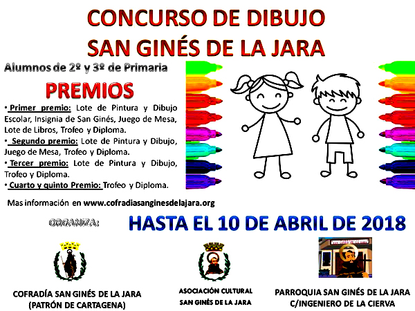 La hermandad del patrono de Cartagena organiza un certamen pictórico dirigido a alumnos de segundo y tercer curso de Primaria, pudiéndose efectuar la inscripción hasta el 10 de abril. Los premios se entregarán durante la Semana Cultural de San Ginés de la Jara, que en este 2018 cumplirá 341 años de patronazgo.