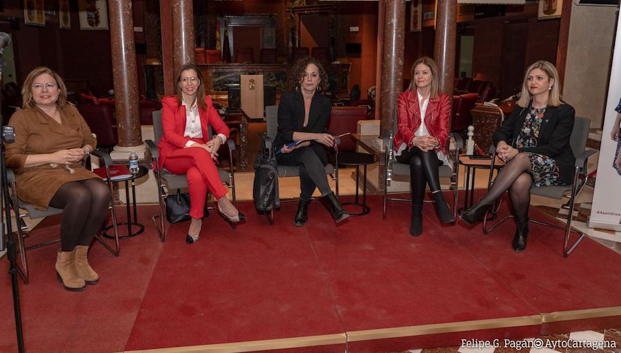 La alcaldesa de Cartagena, Ana Belén Castejón, junto a las primeras autoriades de Águilas, Mari Carmen Moreno, y de San Pedro del Pinatar, Visitación Martínez; y la teniente de alcalde del Ayuntamiento de Murcia, Paqui Pérez, ha participado en una mesa redonda organizada cen la Asamblea Regional con motivo del 'Día internacional de la mujer' y que estuvo presidida por la delegada de EFE en la Región de Murcia, Celia Cantero.