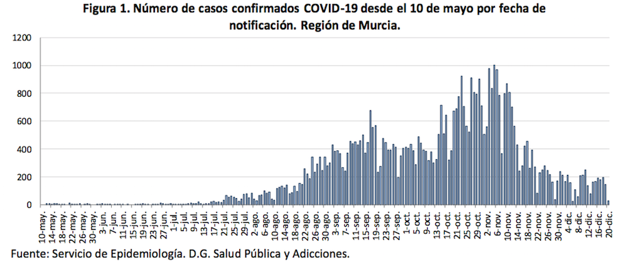 El comité de seguimiento Covid de la Región lo mantiene en riesgo extremo de contagios. En riesgo muy alto lo tienen siete municipios y La Unión, con 28 casos en las dos últimas semanas, está en riesgo medio-alto. El último día deja 30 nuevos contagios sobre 987 pruebas de diagnóstico (3,04%), 6 fallecidos y 91 curados.